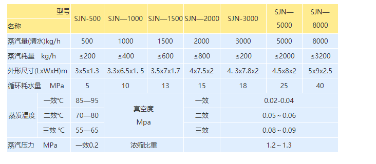本設備采用列管式循環外加熱工作原理,物料受熱時間短、蒸發速度快,濃縮比重大,保持物料原效。
