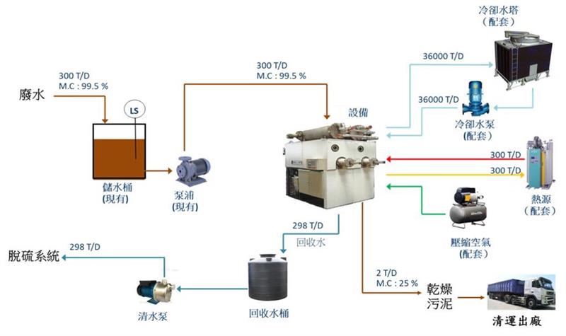 可將廢液中含水份回收90%以上。